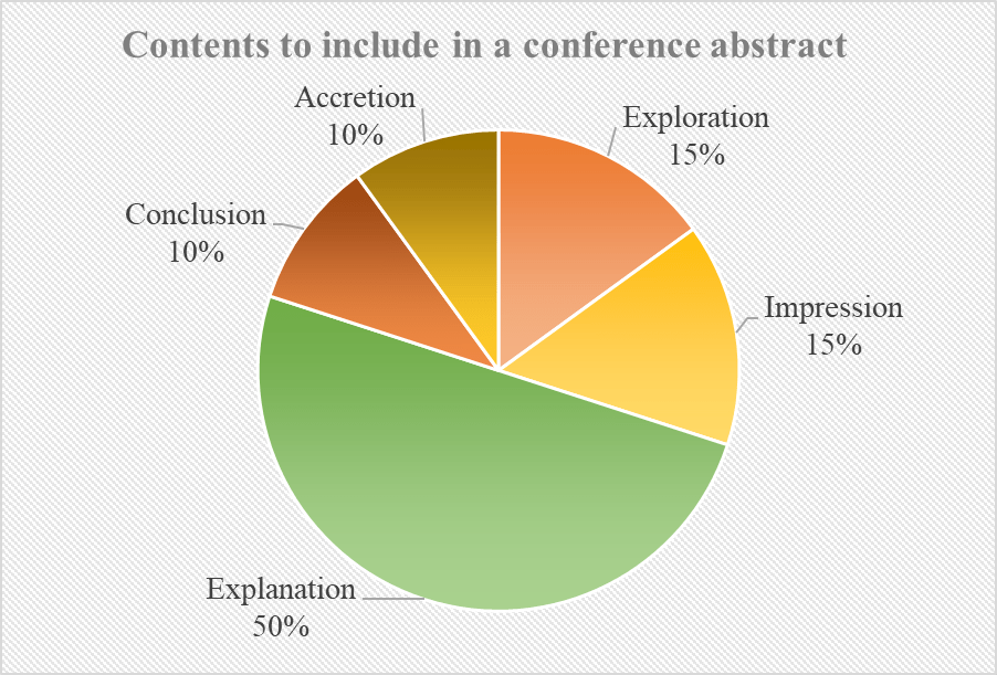 Having thought about conference audiences, the fashionable topics, and your own topic, drafting the abstract is then a matter of refining eloquence and articulacy in writing. Practice is key. One advice from my supervisors was to read A LOT of abstracts from different conferences and grants / fellowships award holders, so to get a gist of the kinds of content good abstracts contain. My summary so far is that good abstracts should definitely contain a catchy title; afterwards an abstract addressing 5 points: exploration, impression, explanation, conclusion, and accretion.